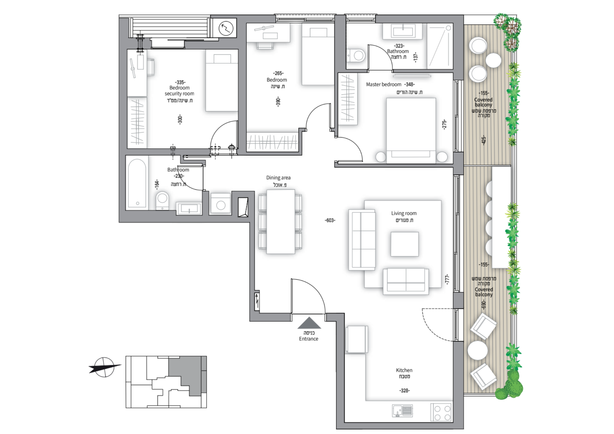 The project has a diverse mix of apartments with luxurious specifications that include, among other things, covered parking, storage, a luxurious main lobby, elevator, electric Venetian blinds, preparation for a cinema system, connection to smart electricity, central air conditioning using the VRF method, a luxurious kitchen and sunny balconies that allow for a lot of light and air And everything is finished at the highest level. Throughout the building, both in the apartments and in the public areas, the desire to give you a warm homely feeling is evident thanks to the smart contemporary design aimed at your comfort.